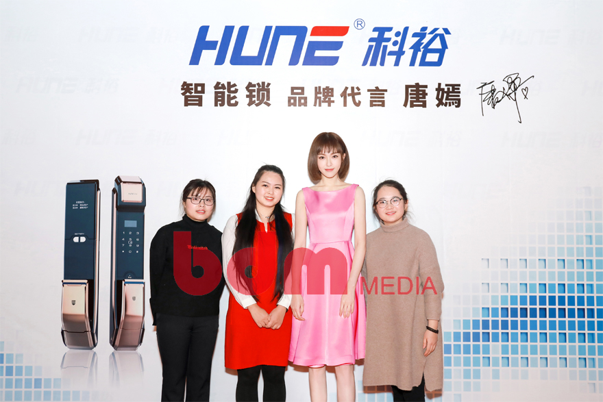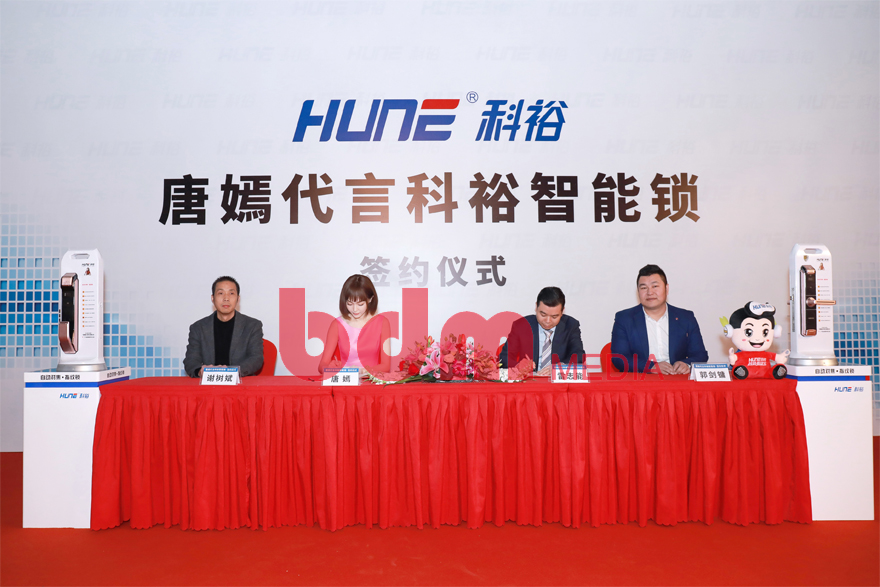 2018年初,北京联动传媒集团携手科裕智能锁与知名影星唐嫣在上海正式举行签约仪式。