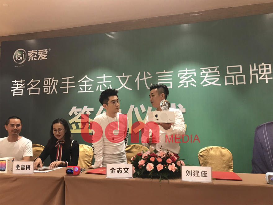2018年7月23日,北京联动传媒集团携手索爱及品牌形象代言人金志文签约仪式在贵州安顺希尔顿酒店隆重召开,国内著名实力派唱作歌手金志文正式出任索爱新一代品牌形象代言人。